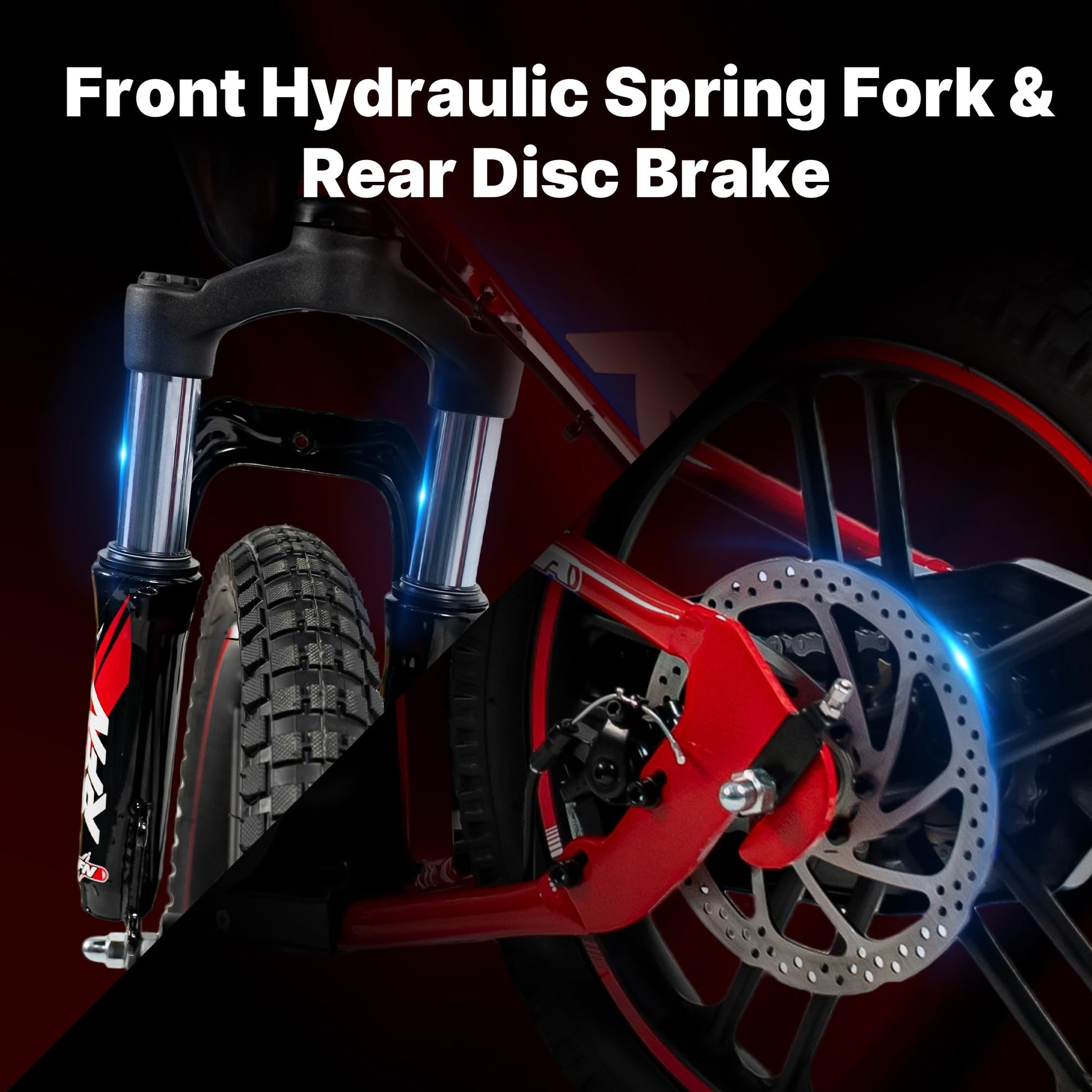 - Long-Lasting 24V 5Ah Lithium Battery with Off-Road Suspension: Powered by a 24V 5Ah lithium battery, this electric bike provides 40-60 minutes of ride time per charge and recharges in about 2.5 hours. IP54-rated for water and dust resistance. Combined with a front suspension and 16" off-road tires, it soaks up impacts and improves traction, offering greater stability and comfort on more challenging terrain-giving young riders the confidence to tackle varied surfaces