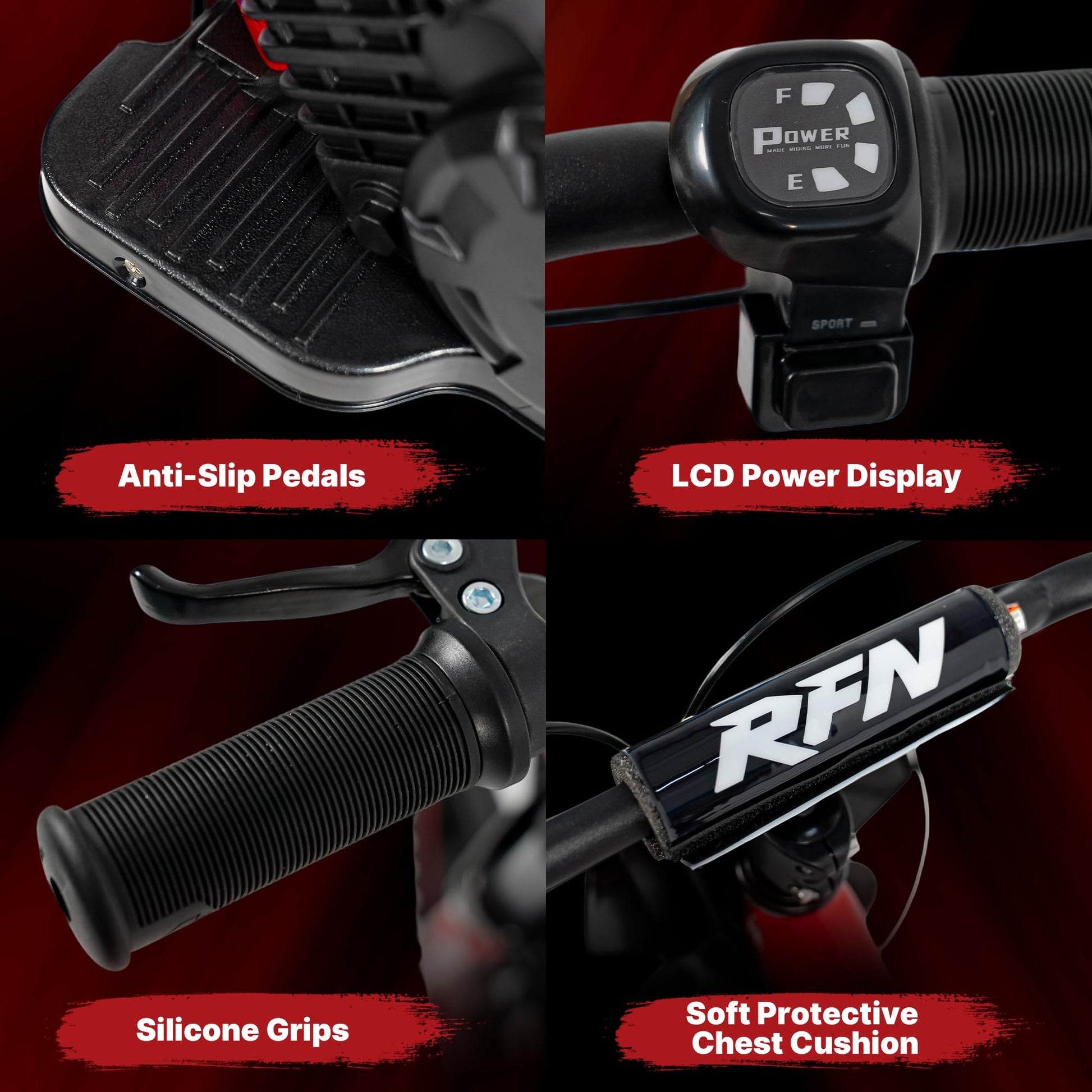 - Enhanced Safety for Young Riders: Safety is the top priority with the RFN 16" e-bike. It features high-performance brake calipers for reliable stopping power and a reinforced lightweight aluminum frame for exceptional stability and durability. Designed with young riders in mind, this electric balance bike provides a secure and confidence-building experience for kids aged 6-12